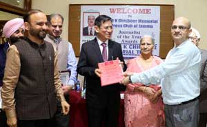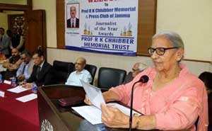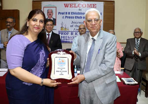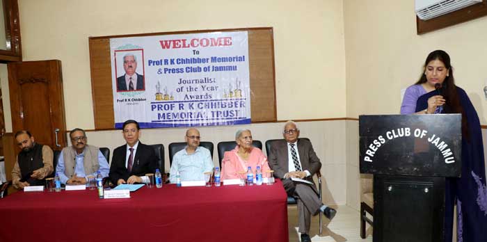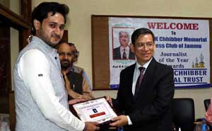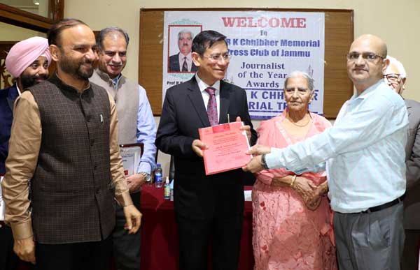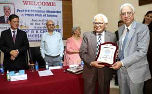 The awards were presented at a functionorganised by the Prof. R.K. Chhibber Memorial Trust here today at the Press Club of Jammu.