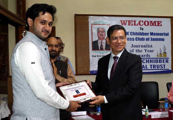 The Chief Justice of the High Court of Jammu and Kashmir and Ladakh Justice N. Kotiswar Singh on Wednesday presented the Prof R.K. Chhibber Memorial Trust-Press Club of Jammu Journalism Awards to former The Indian Express bureau chief of HimachalPradesh Ashwani Sharma, Senior Correspondent of Dainik Jagran Satnam Singh and Correspondent of ThePrint website Amogh Rohmetra.