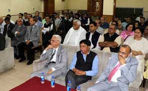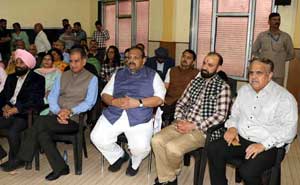 Justice Vinod Chatterji-Koul, Justice Rahul Bharti and Justice Wasim Sadiq Nargal, J&K Advocate General D.C. Raina, Deputy Solicitor General Vishal Sharma, J&K High Court Bar Association, Jammu, president, Vikram Sharma, senior advocate M.K. Bhardwaj, Press Club of Jammu President Sanjeev Pargal, former Deputy Chief Minister Nirmal Singh, former minister and senior National Conference leader Ajay Sadhotra, senior BJP leader Devinder Rana, ex-MLC Naresh Gupta, head of Department of Cardiology Dr Sushil Sharma, former Presidents of the Press Club of Jammu Manu Srivatsa and Ashwani Kumar, former J&K Chief Secretary BR Sharma and several others were present.